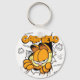 A bold and playful illustration of Garfield breaking through the page, showing his classic lazy-yet-grumpy expression surrounded by comic-style outlines of his face.