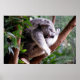 An adorable koala sleeps in a eucalyptus tree at Australia Zoo. He tucked himself into a little koala ball!