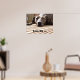 A lazy brindle lurcher enjoying a nice rest after a long day out. He is a handsome dog and is laying flat on the decking looking straight at the camera. You can customise the poster with the text of your choice.