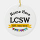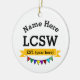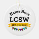 Personalize this ornament with a name and year to congratulate a Licensed Clinical Social Worker on obtaining their license! Easily edit the text with your customizations.