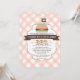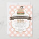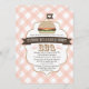 L'été est un grand temps pour accueillir un pique-nique de barbecue pour un wedding shower de couples. Nos invitations de partie de BBQ de wedding shower de couples avec un motif rose et blanc de couverture et de guingan et de contrôles de nappe de pique-nique, une bannière de brun foncé et un hamburger avec un drapeau de cure-dents et une conception de coeur sont mignonnes et amusement. © Chrissy H. Studios, LLC d'illustration. Tous droits réservés.