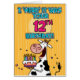 " Je "le vis en troupe" étais votre 12ème anniversaire !" vache à b-jour d'amusement tenant une carte de voeux de gâteau d'anniversaire.