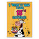 " Je "le vis en troupe" étais votre 18ème anniversaire !" vache à b-jour d'amusement tenant une carte de voeux de gâteau d'anniversaire.
