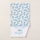 Belle serviette en bleu et blanc avec un motif floral de fleurs d'oubli-me-pas. Ajoutez le nom de famille en lettres bleues élégantes.