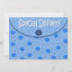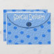 Ces invitations mignonnes superbes de baby shower sont bleues avec un pois bleu plus foncé. Les invitations sont conçues pour ressembler aux enveloppes faites de papier rugueux et d'avoir une fermeture bleue de bouton. L'aileron d'enveloppe indique la livraison spéciale dans la police blanche. Ce texte est établi dans la conception, donc il n'est pas personnalisable, toutefois tout les texte du verso est ! L'autre côté de ces invitations de baby shower de garçons d'enveloppe de points de bleu ont le même bleu sur la conception bleue de point de polka et un secteur blanc pour votre texte dans la police bleue. Ces invitations de baby shower sont parfaites pour célébrer l'arrivée prochaine de Maman-À-Sont la livraison spéciale de petit bébé !
