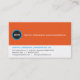 Les couleurs vives orange et cyan avec un monogramme simple en cercle noir font une déclaration graphique efficace sur ce carte de visite. La carte idéale pour une entreprise qui cherche un look audacieux et qui n'a pas peur de la couleur. Assez polyvalent pour une variété d'entreprises et d'entreprises, y compris le marketing et les communications, le conseil ou la technologie de l'information. Disponible en couleurs alternatives avec des produits correspondants.