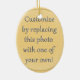 I was disappointed with the writing on the ornament. It’s just too small and can barely be seen. Also it was not as obvious on screen that the position of the hole for hanging was centered on person’s forehead. Writing that came with chosen frame is too small and can barely be seen.