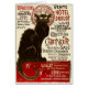 Vintage advertising poster for an art exhibition sponsored by the Chat Noir cabaret, hangout of artists and writers, by distinguished poster artist Théophile -Alexandre Steinlen. The black cat ("le chat noir") glowers fiercely at the observer. The drawing and colours are gorgeous. (BTW, Rodolphe Salis was the owner of Le Chat Noir.) English translation: