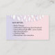 Perfectionnez le carte de visite pour le studio de beauté ou l'artiste de maquillage. Les couleurs et la conception se tiennent et le rendent capture apparente et de yeux. Il peut être unilatéral ou double face. Le client peut customiser et personnaliser la carte, pour ajouter ou enlever des téléphones, des noms et d'autres contact et détails de l'information.