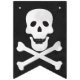 Célébrez avec une touche éffrayante ! Cette banderole de "Joyeux Anniversaire" en noir et blanc présente des lettres et des graphismes audacieux, crânes et croisés, parfaits pour les fêtes d'anniversaire d'Halloween ou de pirates. Une décoration ludique et festive au-dessus des tables de desserts ou des entrées de fête.