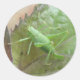 Cette belle feuille d'autocollants ronds présente une photo détaillée d'une femelle cricket vert assise sur la feuille d'un tournesol. La photographie a été prise en utilisant la macro photographie pour montrer cet insecte fascinant et son environnement dans les moindres détails.