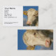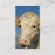 Une grande image d'une jeune vache blanche forme la base d'un carte de visite agricole.