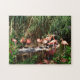 La photographie polychrome de nature de beaux flamants roses dans un gabarit luxuriant d'arrangement d'étang a vu le puzzle. Ayez l'amusement remonter ce puzzle. Amusement pour tous les âges.