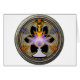 Un bouclier en pierre comportant le grand rite païen représentant le calice de la déesse et l'athame du dieu à cornes avec les bijoux rouges et bleus, les droits d'or et d'argent, les spirales et le knotwork celtique de triquetra.