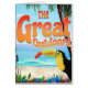 The Great Outdoors humoristique poster de paysage d'oiseau Paradise Toucan sur une plage de sable.