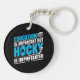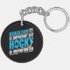 Drôle porte - clé à thème hockey avec texte bleu et blanc sur un arrière - plan noir lit L'éducation est importante Mais le hockey est important!