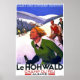 Belle affiche de voyage vintage en France annonçant la station de ski du Hohwald en Alsace- Lorraine. Il montre les skieurs s'amusant sur les pistes avec chalets de ski dans l'arrière - plan.