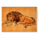 Un lion berbère éteint crouching, repos, re-élaboration du peintre néerlandais Rembrandt Van Rijn fin des années 1640.Design monogramme classique sur arrière - plan noir, stylo et encre dessin en jaune orangé vif, couleurs noires avec de vieux effets de parchemin brun.