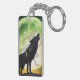 Grand loup noir et lune pleine et brillante avec le design de l'ombre de loup-garou.
