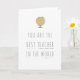 Dites vous remercient à votre maître d'école avec cette le "meilleur professeur carte de voeux d'acoustique à monde" avec le globe d'or - perfectionnez pour un professeur de géographie.