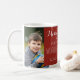 Tasse personnalisable de maman de Joyeux Noël de modèle de collage de photo en rouge et blanc. Un grand cadeau personnalisé de photo pour des mères.