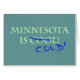 Un design amusant qui dit Minnesota est cool! et le cool est croisé et remplacé, à l'encre bleue, par le mot froid! Tout le monde sait que le Minnesota a des hivers rigoureux avec beaucoup de neige et des températures glaciales, mais c'est aussi un endroit éclectique avec la nature, de belles villes, une scène musicale animée, et 10 000 lacs.