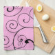 Serviette de cuisine tourbillonnante rose et noire élégante et audacieuse, personnalisable avec votre propre texte ou photo, une addition unique et élégante à votre décor de cuisine.