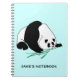 Carnet personnalisé : Un panda illustré noir et blanc tenant les pousses de bambou vertes dans sa patte et les mangeant.