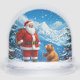 Une rencontre chaleureuse entre le Père Noël et un ours au milieu des montagnes enneigées et des arbres à feuillage persistant. La saison festive est marquée par des couleurs vives, des décorations festives et une ambiance joyeuse.