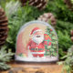 Le Père Noël tient un cadeau avec joie et est entouré d'un sapin de Noël décoré. La scène festive illustre la célébration, la joie et l'esprit de fête.