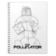 Caricature de nouilles. L'apiculteur a été stylisé comme un personnage de super-héros - entièrement équipé avec des abeilles, outil de ruche et fumeur - juste un peu distrait par l'abeille dans son voile. Parfait pour garder une trace de vos ruches.