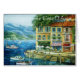 Inspired by my many visits to southern France, I wanted to give life to a typical fishing village in the Cote dAzur. Enjoy the bright colours that are so characteristic of this area. I imagine myself, and my little black cat, sitting at the cafe.