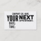 Carte de rendez-vous simple, taille: États-Unis : 8,9 cm x 5,1 cm, papier : Signature Matte, coins Coins carrés