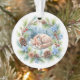 Un mignon renard dort dans une forêt enneigée entourée d'une couronne d'hiver composée de bouges de sapin, de cônes de pin, de baies et de flocons de neige.