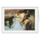 L'illustration vintage intitulée, "le rivage enchanté" par le charron de Rowland dépeint des sirènes dans une crique rocheuse tentant un soldat à cheval pour venir plus près de elles. La carte est intérieur vide pour votre message manuscrit.