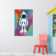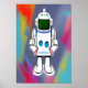 Un robot blanc sur un arrière - plan coloré. C'est une oeuvre d'art générée par l'IA.