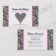 Le rose a équilibré le carte de visite de coeur d'impression de zèbre