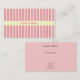 Ce joli carte de visite est parfait pour n'importe quelles affaires ou profession. Il comporte un arrière - plan rose avec les rayures jaunes sur le dessus et le bas de l'avant. Courses jaunes d'une rayure par le centre. Le dos est un rose solide. Tout le texte est personnalisable.