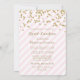 Les invitations nuptiales personnalisées de déjeuner avec le motif de confettis d'or, pastel léger rougissent les rayures roses et blanches, et le lettrage manuscrit de style. Personnalisable avec votre texte.