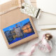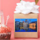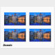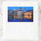 Autocollant photo rectangulaire de l'horizon de la ville de La Haye, le centre gouvernemental de la Pays-Bas, au début de la soirée à l'Heure Bleue avec les gratte-ciel d'architecture moderne derrière le musée historique de Mauritshuis, bâtiment du parlement de Binnenhof et le lac Hofvijver.