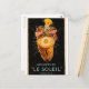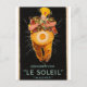 This postcard features a vintage advertisement with a jolly rotund chef carrying Le Soleil brand foods