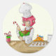 Commencez la saison des Fêtes avec l'autocollant elf Baker! Idéal pour les cadeaux de vacances ou les prix pour les fêtes de vacances ! petits et grands vont adorer ! Image d'Elf dans la cuisine. Un petit chat regarde au-dessus du comptoir.
