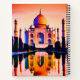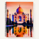 Journal dans une illustration du Taj Mahal, réfléchi dans l'eau, et soutenu par un corail orange profond ciel couché de soleil