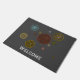 Ces mandalas ont été conçus pour les différents signes du zodiaque, représentant des pierres précieuses au centre de chaque, entourées d'éléments représentant le signe, tels que le symbole du signe, la constellation, le symbole alchimique de l'élément du signe, ainsi que des vignes en filigrane et des tissages l'enveloppant dans une image solide. Les mandalas sont arrangés en un design qui rappelle le système solaire avec chaque signe représentant la planète ou le corps céleste associé. Customisez le texte sur ce tapis de porte avec votre salutation préférée ou retirez-le entièrement pour créer une décoration unique pour votre entrée.