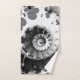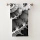 Une spirale fractale profonde et contrastée en noir et blanc recouvre ces serviettes douces et confortables