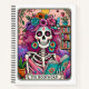 Design coloré et dynamique avec une carte tarot amusante avec un squelette féminin. Le squelette a des cheveux roses sauvages avec des fleurs dedans, un crâne de sucre, et tient un livre ouvert. Le texte coloré dit : "Le ver de bibliothèque". Ce design est disponible sur une grande variété de produits.