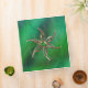 Une oeuvre abstraite en vert vif et en cuivre. Un bijou vert clair est entouré de lames d'herbe bordées de cuivre, agrémentées d'émeraudes étincelantes et d'étoiles oranges. Les fractales ondulantes et courbes de l'arrière - plan apparaissent en vert, marron et orange plus profond à l'intérieur du fil de cuivre du motif de la feuille.