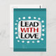 "Lead With Love" is a cute inspirational or motivational quote with a white accent shape surrounded by white textured whimsical dots.
