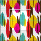This fabric features a delightful pattern of abstract leaves and branches in a variety of colours is reminiscent of hip Mid Century Modern design from the 1950's and 1960's. Leaf colours in this design are yellow, teal, red orange, and magenta with brown abstract twigs.