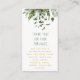 A fresh botanical package insert features watercolor green leaves above a friendly "Thank you for your purchase" message, creating a natural, boutique touch that suits garden centers, plant shops, and handmade small businesses alike. The clean layout leaves room for shop details, social handles, or a brief product care guide, helping customers reconnect after unboxing and care for items while keeping the card light and modern. Coordinated green and soft gold accents are printed effects for consistent results across runs and pair easily with kraft mailers, tissue wrap, or gift boxes for a cohesive, eco inspired presentation.